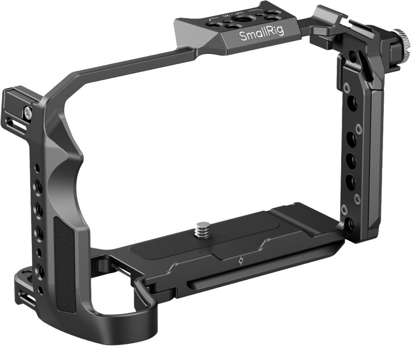 Klatka posiada wiele otworów gwintowanych 1/4″-20 i otworów lokalizacyjnych ARRI do mocowania różnych akcesoriów, takich jak uchwyty boczne SmallRig, uchwyty górne, magiczne ramiona, mocowania monitorów, płyty bazowe Manfrotto i inne.