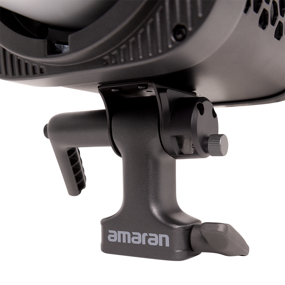 Zintegrowany uchwyt z regulacją nachylenia oraz wbudowaną rączką transportową ułatwia obsługę i szybkie ustawianie kąta świecenia. Zaawansowany system chłodzenia utrzymuje niski poziom hałasu — jedynie 28 dBA w trybie Smart, co umożliwia komfortowe nagrywanie dźwięku.