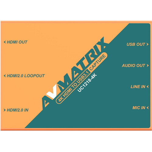 1× HDMI 2.0 in, 1× HDMI in, 1× HDMI 2.0 loop-out, 1× USB 3.0 Type-C (USB 3.1 Gen1, do 200 MB/s)