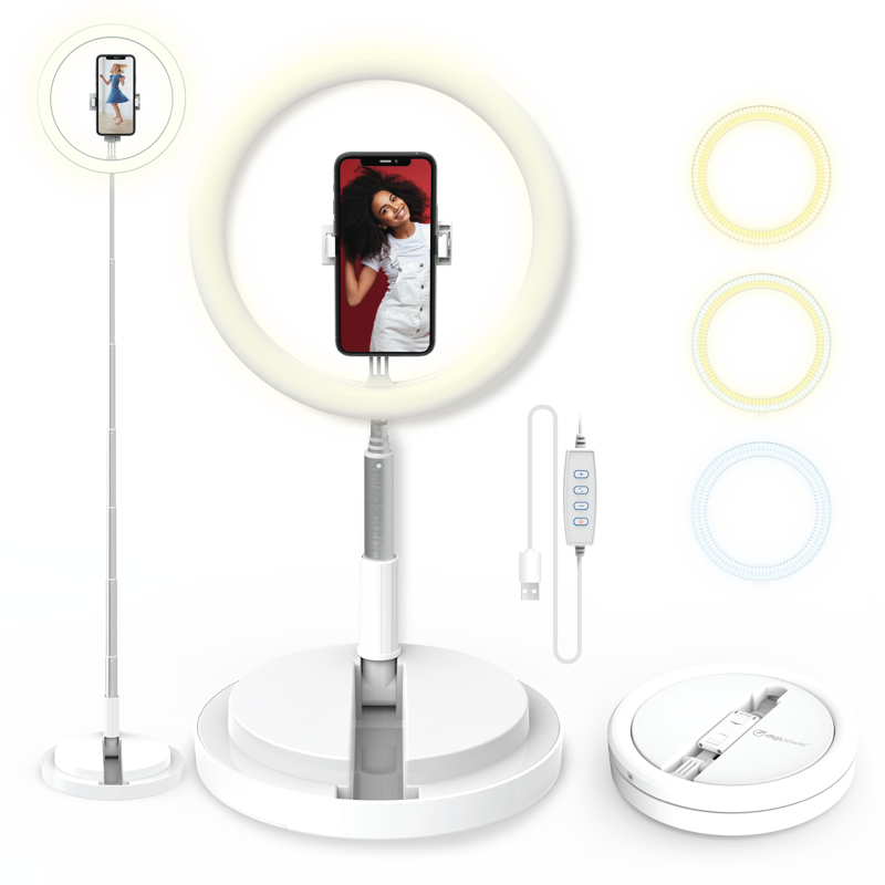 Składana lampa pierścieniowa z 3 trybami kolorów i regulacją jasności.