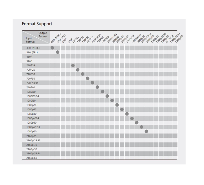 Nadajnik obsługuje najpopularniejsze standardy SDI stosowane w profesjonalnym środowisku produkcyjnym, zapewniając pełną kompatybilność z kamerami, mikserami wizji oraz rejestratorami.