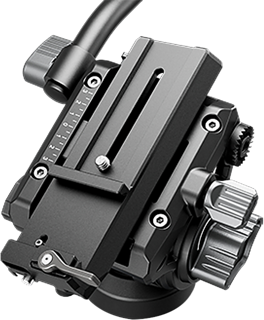 Głowica została wyposażona w funkcję Fast Switch, która umożliwia błyskawiczne przełączanie pomiędzy płytką szybkiego montażu typu Manfrotto a płytką kompatybilną z serią DJI RS. Wystarczy jedno naciśnięcie, aby zmienić konfigurację i dostosować głowicę do aktualnie używanego sprzętu. Dodatkowa regulacja pozycji blokady pozwala dopasować system mocowania do różnych typów płytek.