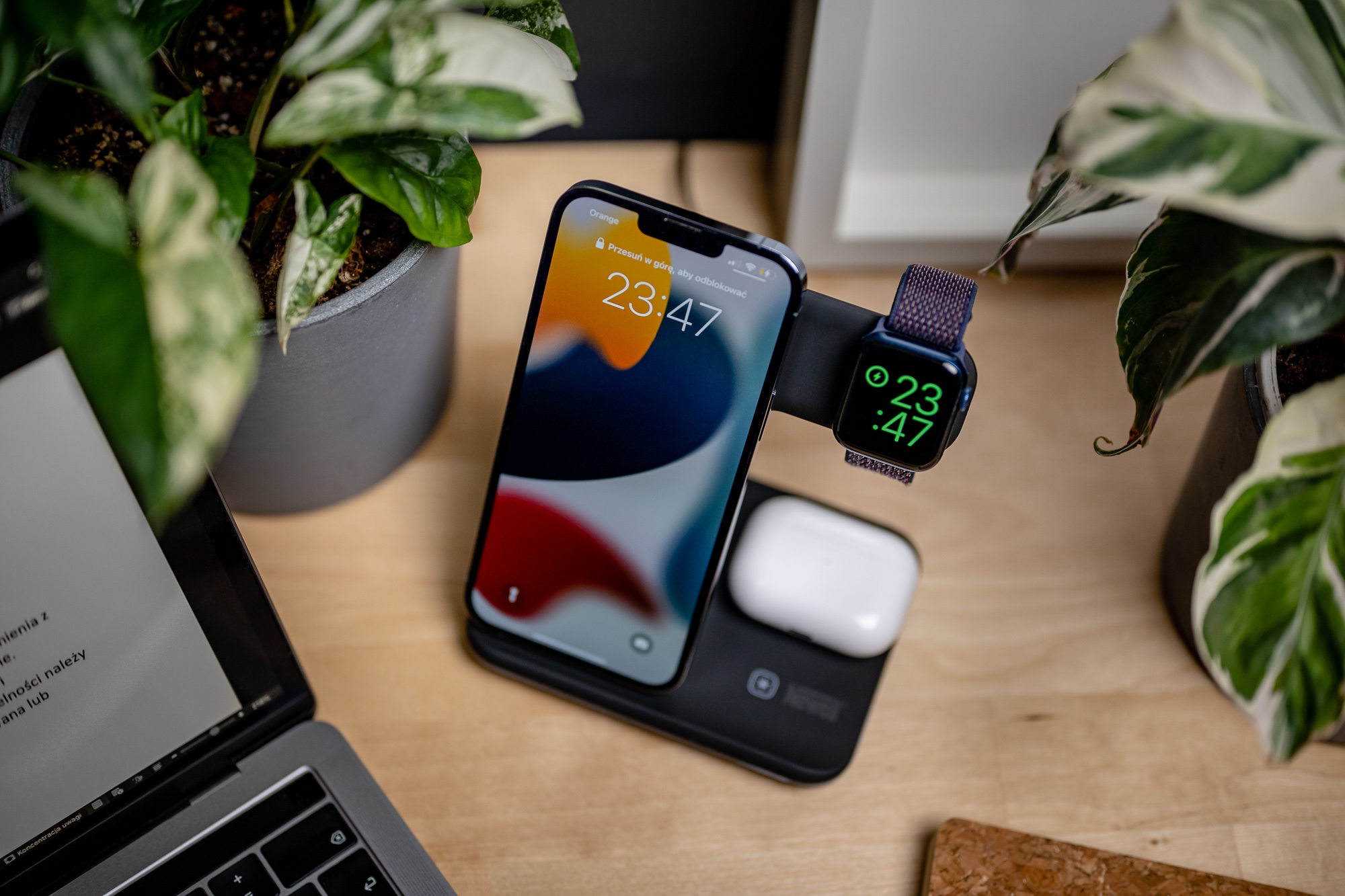 Mając na biurku ładowarkę indukcyjną induOne N-GY-Z5A możesz spokojnie spakować swój oryginalny kabel Apple Watch do podróżnego niezbędnika, gdzie zawsze będzie gotowy na bliskie lub dalekie podróże. W domu lub w pracy stacja pozwalająca uzupełniać energię w 3 urządzeniach jednocześnie będzie dla niego świetną alternatywą! Specjalnie wyprofilowany uchwyt magnetyczny pozwoli wygodnie ładować zegarek Apple Watch w takiej pozycji, aby aktualna godzina była zawsze w zasięgu Twojego wzroku.