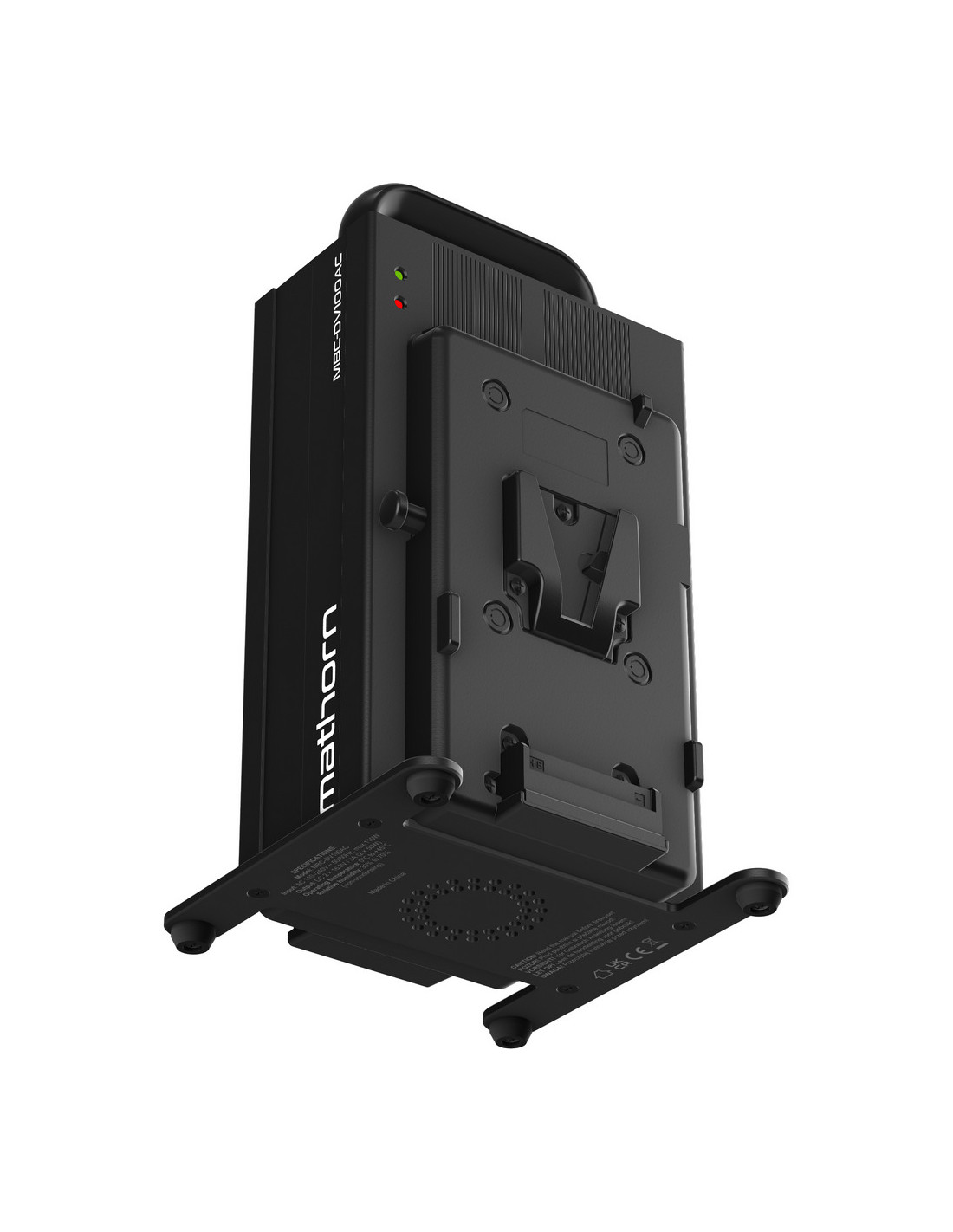 Mathorn MBC-DV100AC to kompaktowa ładowarka sieciowa AC-DC o mocy 110 W, przeznaczona do baterii V-mount / V-lock wykorzystywanych w produkcjach filmowych i studyjnych. Urządzenie wyposażono w dwa niezależne porty ładowania (16.8 V / 3 A, 50 W każdy), umożliwiające jednoczesne ładowanie dwóch akumulatorów, także o różnych pojemnościach.
