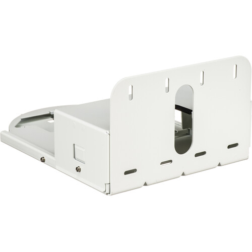 Zamontuj swoją kamerę PTZ CV620, CV612HT-4K, CV620-IP, CV730-BK/WH lub CV730-NDI/NDIW na ścianie za pomocą białego uchwytu ściennego od Marshall Electronics. Uchwyt został zaprojektowany z otworami do przeprowadzenia kabli zarówno na ścianie, jak i pod kamerą, co ułatwia utrzymanie porządku. Kamera mocowana jest na specjalnej tacce, która wsuwana jest w uchwyt i zabezpieczana dodatkowymi śrubami. Uchwyt umożliwia montaż kamery zarówno w pozycji pionowej, jak i odwróconej, co zapewnia elastyczność w instalacji. W komplecie znajduje się zestaw montażowy, który ułatwia instalację.