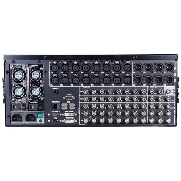 • 3 rzędy wyjść video zapewniają elastyczne wyjście HD lub SD z sesji HD