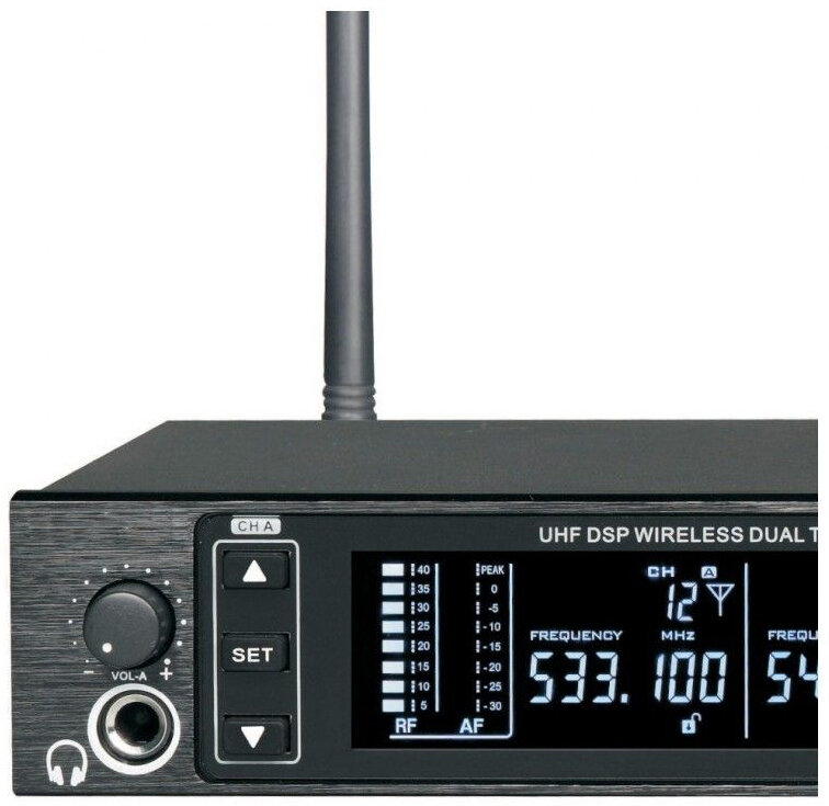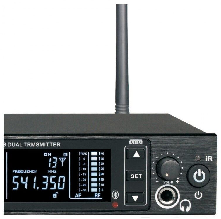 Nadajnik pracuje w paśmie 518–542 MHz, oferując stabilną i czystą transmisję sygnału. Wyposażono go w: