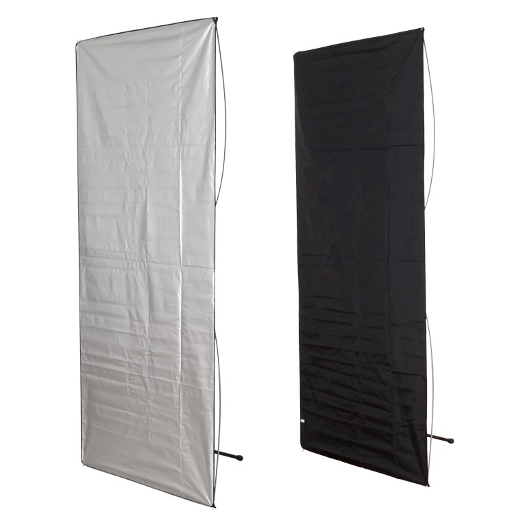 Dwustronny czarno-srebrny panel 2w1 Aurora pochłaniająco-odbijający. Kulowy przegub płaszczyzny pozwala na swobodne manewrowanie jej całą powierzchnią w zakresie pochyleń na boki (+/- 90°) oraz zmiany położenia z pionowego na poziome (obrót rotacyjny w zakresie 360°). Aktualne położenie płaszczyzny blokowane jest zaciskiem. Wykorzystując panel doświetlisz fotografowaną scenę lub zniwelujesz nie korzystne odbicia światła. Duże wymiary płaszczyzny (100x220 cm) pozwalają na używanie jej przy większości wykonywanych w studio lub plenerze zdjęć.