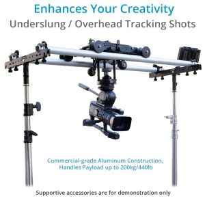 The slider allows easy connection of rail sections to create 4ft, 8ft or even longer tracks that meet the filmmaker’s needs. The construction of the set allows tool-less assembly and disassembly.