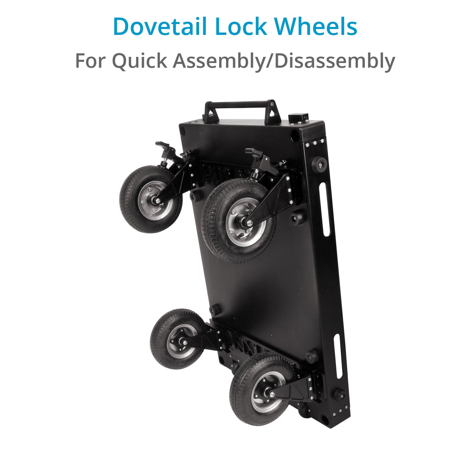 The Proaim Victor V1.1 comes equipped with 9″ Pneumatic wheels and 100% sealed bearing housing which ensures that your cart endures any load placed upon it and still roll incredibly smooth and silent. The use of Pneumatic wheels instead of the industry-standard rubber wheels makes sure that the overall setup remains light, smooth and sturdy. The wheels attach to the cart via a Dovetail Mechanism that ensures quick assembly and disassembly.