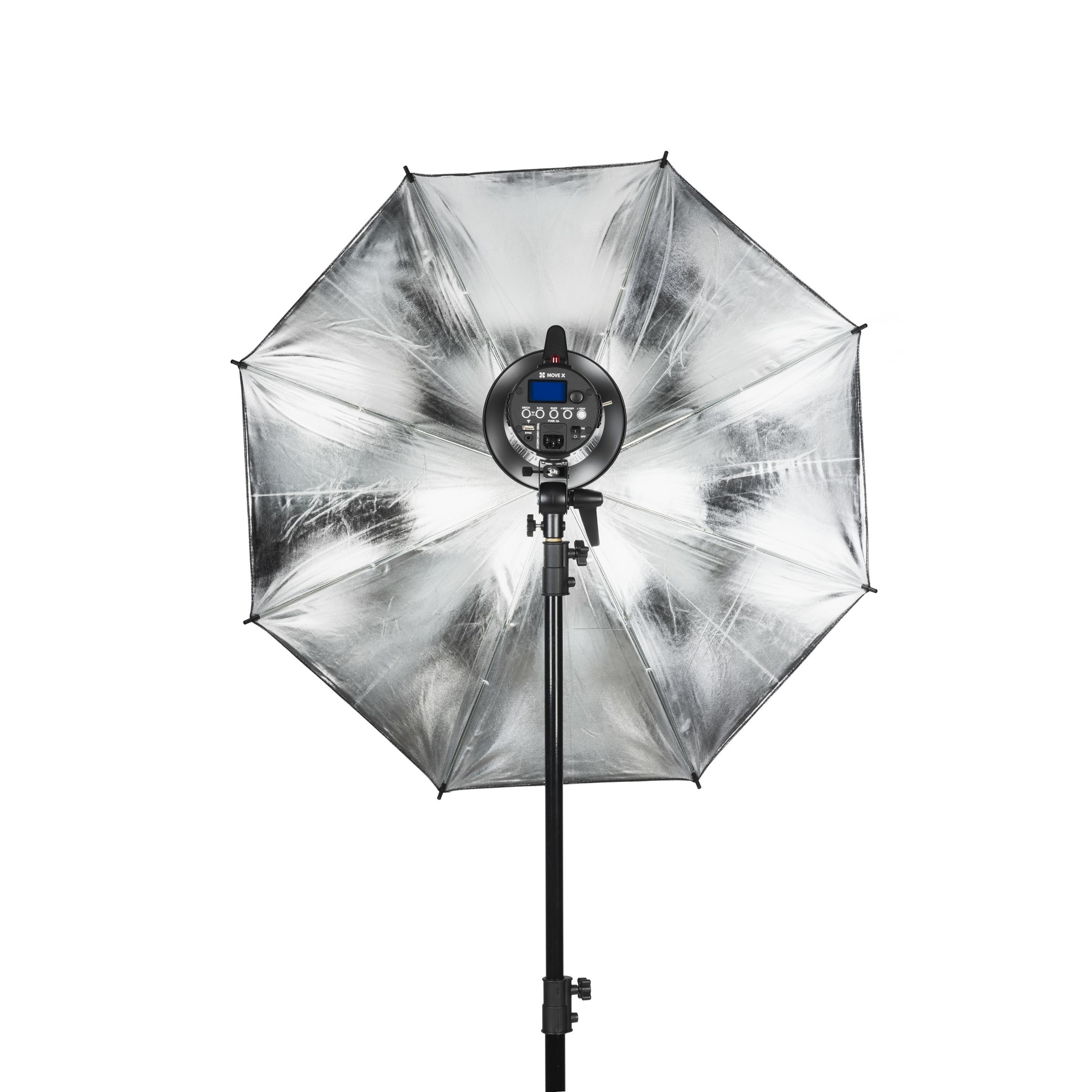 Quadralite Move X wyróżnia się kompaktową obudową wykonaną z aluminium oraz niską masą (jedynie 2kg). Dzięki metalowemu mocowaniu statywowemu pozwalającemu na regulacje kąta pochylenia lampa jest w stanie utrzymać softboxy do rozmiaru 120 cm.