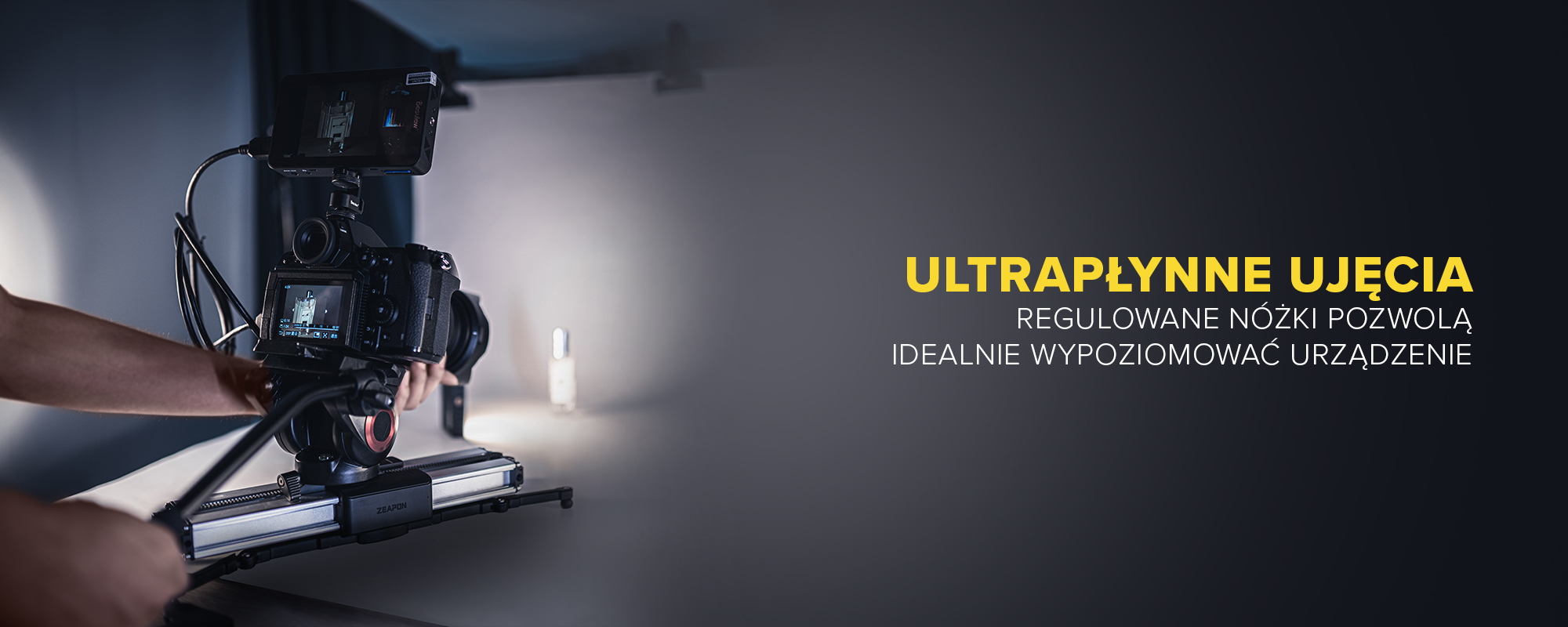 Oferuje maksymalny udźwig do 8kg i imponującą długość najazdu 56 cm. Jego wszechstronność pozwala na montaż na statywie, głowicy czy nawet na podłożu dzięki rozkładanym nóżkom. Unikalny system samoczynnego czyszczenia szyny gwarantuje płynność ujęć przez wiele lat.