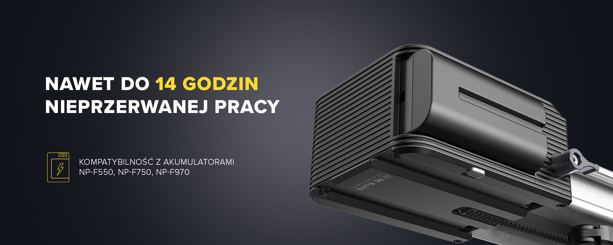 • Elastyczne zasilanie: Moduł napędowy jest kompatybilny z popularnymi akumulatorami NP-F, co gwarantuje długą i nieprzerwaną pracę