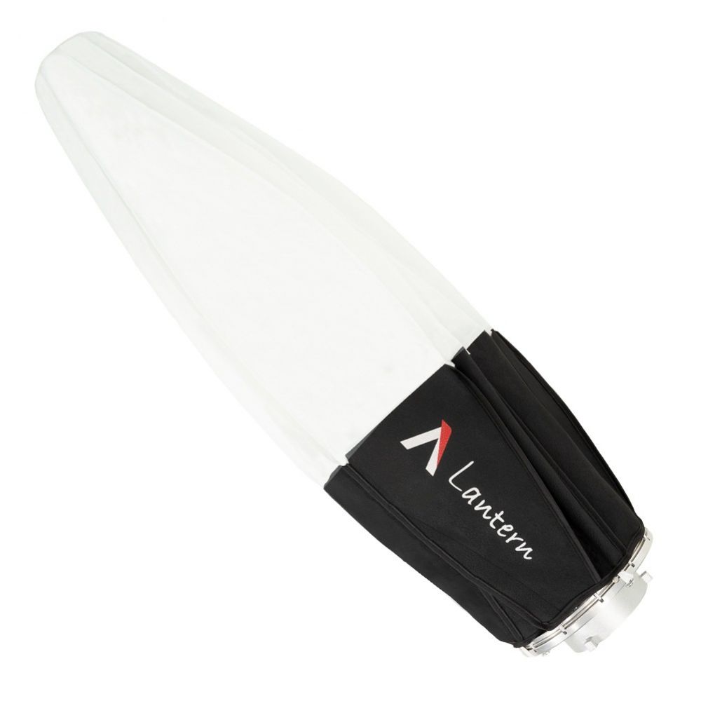 Dzięki sferycznej konstrukcji o średnicy 26 cali, Lantern rozprowadza światło z diody LED lub stroboskopu studyjnego we wszystkich kierunkach, oferując szeroki kąt wiązki 270°.