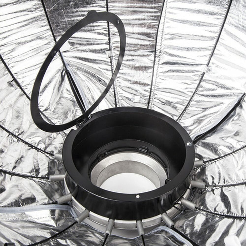 Light Dome Mini II jest wyposażony w pierścień szybkiego zwalniania Aputure, który umożliwia szybkie otwieranie i zamykanie kopuły w zaledwie kilka sekund.