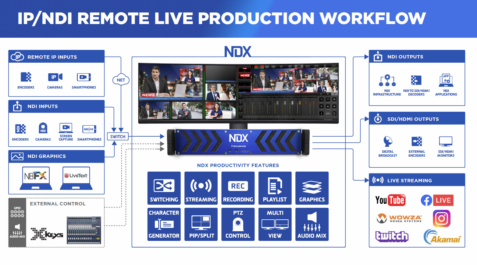 Streamstar NDX to 4-kanałowe studio produkcji na żywo oparte na protokole IP/NDI.